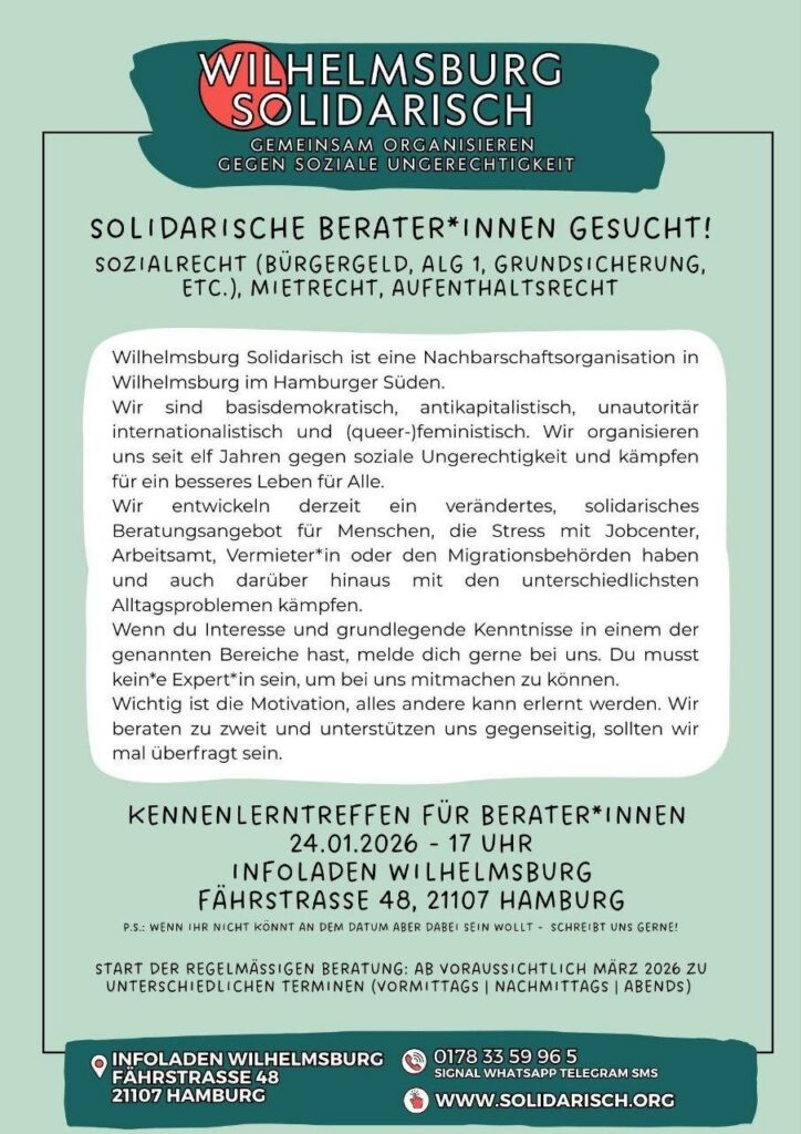 Solidarische Berater*innen gesucht für Bürger*geld, ALG I, Grundsicherung, Mietrecht und Aufenthaltsrecht